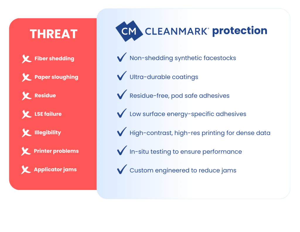 CleanMark wafer box labels stay put, stay clean, and stay readable, without compromising your environment or automation.